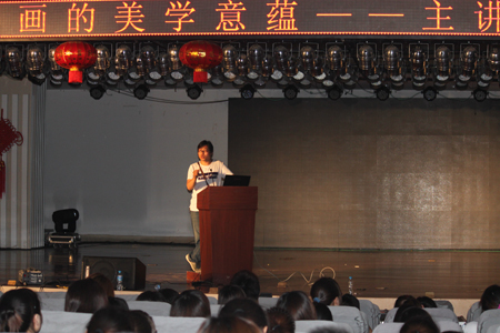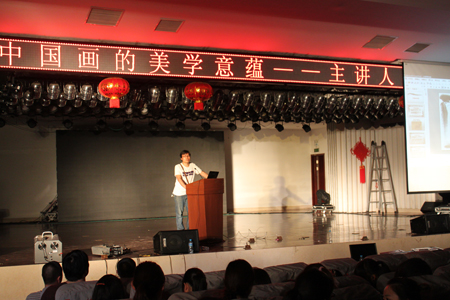 胡山华老师对中国画的基本概念与具体的美学体现向大家做了详细讲解。讲座先从中国画的基本概念入题,重点阐释了古今对中国画的称呼差异,纠正了大众长期对中国画分类方面的误区。在中国画美学具体体现的讲解部分列出了最能代表中国传统绘画精神的五大美学特点――丽、趣、孤、逸、壮,对这些内容的讲解深入浅出,结合大量的图片资料、文献材料与丰富的生活感悟通过绘画体系的横向、纵向比较让同学很好的理解了中国画美学背后的文化内涵,加深了对中国传统文化的认识。