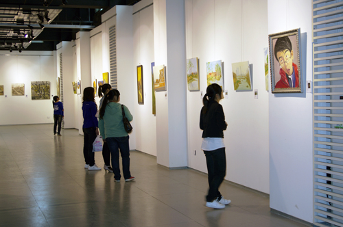 2011年4月18日,《在路上》油画作品展在美术学院美术馆拉开帷幕。此次展出作品由08级油画方向的学生白浩、苗锡波、黄华影、潘海、陈剑义、王辉六人创作完成。 本次展览共展出一百余幅的作品,这些作品的内容包括风景、人物、静物三大类,无论是大河风光还是城市建筑工人,其创作素材均来自于平时生活场景。每幅作品都流露出他们对生活的细心观察与深刻体会。在技法上他们不断努力钻研和实践,并在老师的悉心指导下不断取得进步。 “业精于勤”,本次展览不仅体现了08级油画方向同学的勤勉与认真,也体现了美术学院学生求学务实的态度。此外也给学院师生建立了一个交流学习的平台。(文/窦冰 图/车帅)