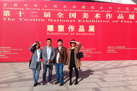 全国美术作品展览是由文化部和中国美术家协会共同主办的规模最大、参与范围最广、作品种类最多、最具权威的国家级综合性美术大展,每五年一次。今年太原市人民政府承办的第十二届全国美展“雕塑作品展区”于2014年9月25日至10月25日在山西太原美术馆展出。10月17日至19日,美术与设计学院公共艺术设计教研室一行人在领导的指导下,赴西安进行为期三天的观摩学习。 此次观展,在场的教师深深地被一件件题材、材料和形式语言多样化的精湛雕塑艺术作品所吸引,驻足观看、交换心得,不时拿起相机拍摄精彩画面与局部细节处理,并仔细记录观赏心得,全身心投入在观看当中。 教师在太原进行的为期三天的专业展览考察交流中,认真观摩参赛作品,积极交流学习心得,开拓了视野,发现了自己的不足,同时,在观展中教师们进行了细致的考察记录和特色优势分析,并及时进行了探索与总结,为以后更好的服务教学奠定了基础。