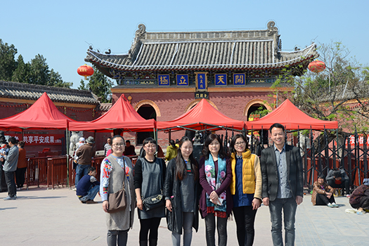美术与设计学院2014年度国家社科基金艺术学项目“中原民俗图绘研究”旨在以大众喜闻乐见的图绘形式展示中原民俗文化,以生动、形象的绘画语言推动中原民俗文化的传承与推介。为深入挖掘民俗活动资料,搜集创作素材,在一年一度的淮阳太昊陵“二月二”庙会期间,项目组全体成员在郑芳教授的带领下多次赴淮阳考察学习。 4月5日,在淮阳群众艺术馆,项目组成员参加了“全省传统美术保护工作培训班”学习,聆听了南京大学徐艺乙教授、非物质文化遗产保护工作专家委员会委员邱春林题为《作为非物质文化遗产的传统美术调查与保护》和《保护非遗:促城镇化朝特色化发展》的专题报告,并和与会的省内外民间美术专家、同仁就非遗保护工作进行了研讨。随后又在淮阳县群众艺术馆观摩了民间艺人手工制作现场,参观了淮阳泥泥狗展览馆,切实感受了淮阳泥泥狗作为中国本源文化活化石的魅力。 4月11日,项目组成员一同观赏了“中原古韵——第六届中国(淮阳)非物质文化遗产展演”和陈楚古街传统手工技艺类非遗项目等丰富多彩的庙会项目。历时半个多月的非物质文化遗产展演,包含传统音乐、舞蹈、戏剧及体育、杂技、曲艺等各级项目各具特色,精彩纷呈。陈楚古街齐聚全省各地传统手工技艺类非遗项目,包括泥塑、陶瓷、雕花、布艺等艺术门类,展现出一场多彩的传统文化盛宴,淮阳太昊陵庙会众多的民俗风情深深吸引着项目组每一位成员。 此次淮阳考察学习之行,得到了淮阳县人民政府、周口市文广新局等政府单位的大力支持。项目组成员一致认为,此行目睹多彩的民风民俗和丰富的民艺展演,收获颇多。不仅捕捉到了民俗活动丰富的形象资料,更领略到民俗文化的深厚内涵,感悟到个中掩藏的精神支点,同时也提炼出了创作元素与符号,为课题的深入研究夯实了基础。