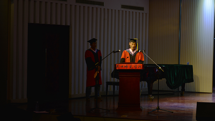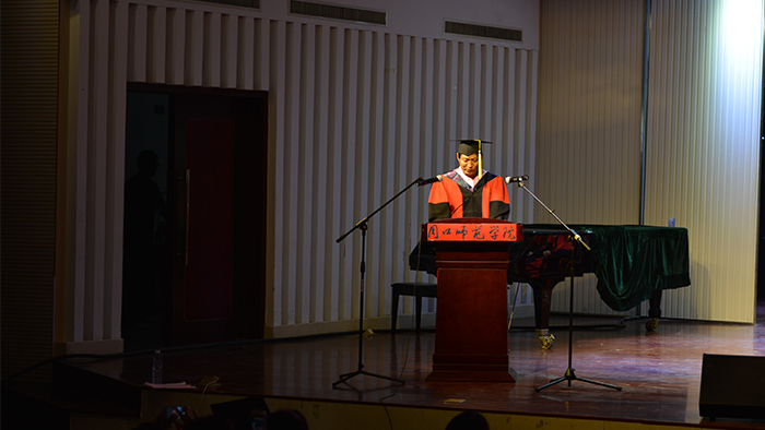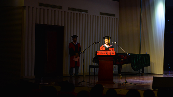 6月6日下午,周口师范学院美术与设计学院2015届毕业典礼暨学位授予仪式在音乐厅圆满举行。典礼由美术与设计学院党总支副书记贾振勇主持,美术与设计学院党总支书记郑芳、副书记高菊、副院长桑林、贺洛乙、周晓峰以及各科室主要老师出席了此次典礼。 (作者:兰天 摄影:吴迪)