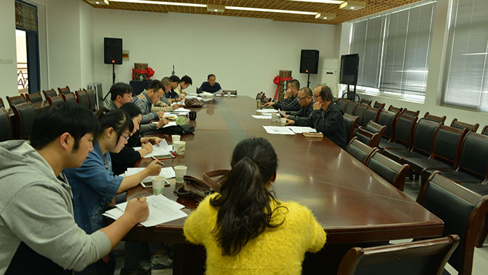 2015年10月13日,美术学院教学工作会议在美术学院会议室召开,学院班子成员,各教研室负责人,教学办负责人等共15人参会,学院院长吴京垿、书记桑林、副院长贺洛乙出席,会议由教学办陈钟林主持。会议的主要议题是“2016人才培养方案前期准备工作”、“专业规划及内涵建设”和“进一步完善‘导师制’的工作安排”。