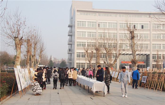 为了让专业艺术走出学院殿堂,让更多的人熟悉、欣赏、拥有艺术作品,秉持着“艺术走进生活”的理念,美术学院于12月21日至12月24日在美术学院广场前举办“艺术走进生活”师生作品展售会,拉开了艺术品和生活消费融合活动的序幕。 本次“绘事致市——美术学院艺术作品走进生活展售会”是美术学院“艺术走进生活”大型专题系列展览之一,共展出作品300余件。作品种类丰富,中国画、书法、油画、水彩画、装饰画都有涉及,作品表现手法多样,画面精良。这一展售活动不仅是贯彻周口师范学院“面向地方,服务地方”转型精神的有益尝试,亦是以专业创作向大众弘扬艺术之美的积极努力。