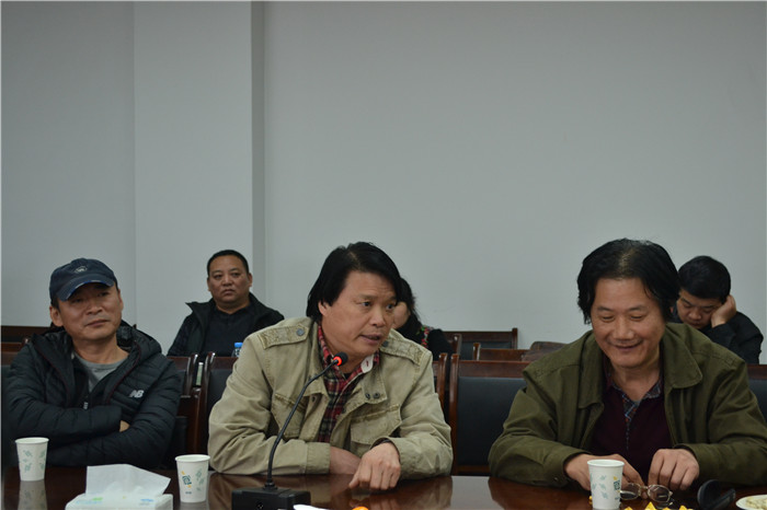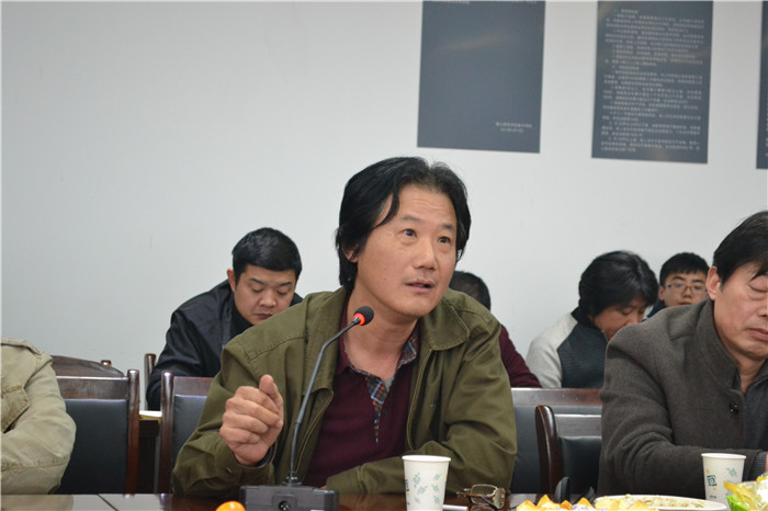 2016年3月10日下午2点30分,由河南省美术家协会、河南省油画艺术研究会、河南省学校艺术教育协会、周口市文学艺术界联合会、周口市政协书画院、周口师范学院联合主办的“浮图——吴京垿2015”油画展学术研讨会在美术学院会议室正式开始. 河南省文联副主席,河南省美术家协会主席刘杰、河南省美术家协副主席,河南省油画艺术研究会会长丁昆、河南省学校艺术教育协会会长,华北水利水电学院党委副书记石品教授、河南省书法家协会副主席,河南大学艺术学院院长赵振乾教授出席了学术研讨会,来自河南大学、郑州大学等10所兄弟院校的20多位专家、学者列席,美术学院全体教师也参加了研讨会,会议由副院长贺洛乙教授主持. 刘杰主席代表河南省美术家协会对此次画展给予了充分的肯定,他认为吴京垿教授志存高远,扎根生活,先后创作了一批艺术上有追求,思想上有深度的精品画作。此次展出的作品饱满而富于张力,向观众传达了一种蓬勃的生机与活力,体现了作者对艺术真谛的认识和对社会人生的思考,具有令人难以忘怀的艺术品质。 丁昆会长、石品教授、赵振乾教授和其他兄弟院校专家代表分别作了发言,他们从不同角度对周口师范学院充分发挥艺术人才、资源集中的优势,积极探索,不断创新,在人才培养、科学研究、服务社会等方面取得显著成绩给予了充分肯定。对“浮图——吴京垿2015”油画展中的作品表示高度赞扬.在全面深化改革新形势下,高校艺术家对于促进的学术性发展和文艺市场的繁荣起到了重要作用,对发展壮大文艺队伍,促进艺术可持续发展具有重要的意义。