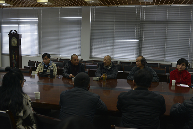 3月1日下午4时,首都师范大学硕士生导师段建伟教授在美术学院会议室开展了“绘画艺术创作交流茶话会”。美术学院全体教师和20多名学生代表一同参加了此次交流会。会议由美术学院院长吴京垿主持。 段建伟教授结合自身艺术经历,生动精彩的阐述了自己的艺术观点,他认为艺术与生活是紧密联系的,绘画创作恰是他反映客观生存和表达自我的一种方式,并从中找寻绘画本体的价值及人与社会、人与自然的某种精神可能。最后,段老师回答了在场师生的提问,他语言幽默生动,视角新颖独到,阐述精辟深刻,显示了其深厚的美学修养和博大的艺术情怀。 茶话会结束后,段老师还到油画教研室观看了老师们的作品,指出了大家在艺术创作上存在的问题,并提出了许多有针对性的宝贵意见,使老师们受益良多,不但开阔了专业视野,也为今后的艺术学习与创作注入了新的思路与动力。(作者:周如俊 美术学院供图)