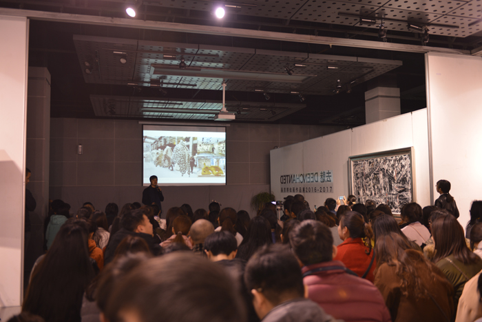 3月17日,当代知名艺术家、容与视觉传媒公司创始人于进江先生应邀来我校作了题为《艺术创作价值》的学术讲座。美术学院美术学、绘画、动画专业师生聆听了讲座。讲座由美术学院院长吴京垿主持 于进江先生首先分析了艺术与价值的关系,然后通过他本人的艺术创业经历和生动的实例展示了艺术的独特魅力和艺术价值实现的精彩瞬间。讲座过程中,于先生详细讲解了他们公司的制作产品过程,从构思到实施,从理念到深度,从社会到文化,于先生讲解生动且深刻,引发现场师生们对艺术的极致性产生思考,对根源文化与当代设计的巧妙结合展开讨论。 讲座轻松生动,深入浅出,对同学们在今后的专业学习和社会实践中具有重要的指导意义。(作者:李翔美术学院供图)