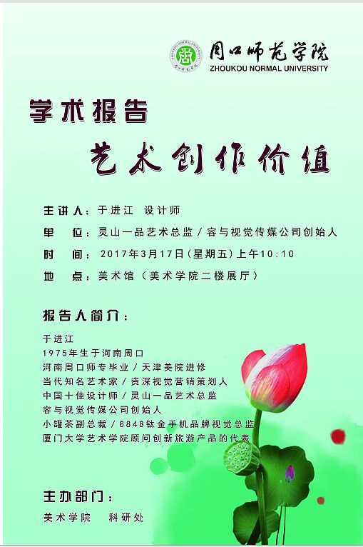 地址:河南省周口市川汇区文昌中路6号 联系电话:0394--8178288 邮编:466001 邮箱:meishuxi@zknu.edu.cn